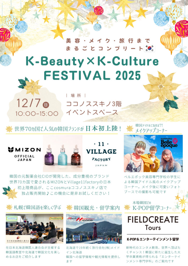 12月7日の日曜日にすすきのにある商業施設『ココノススキノ』にて、韓国イベントに参加します!